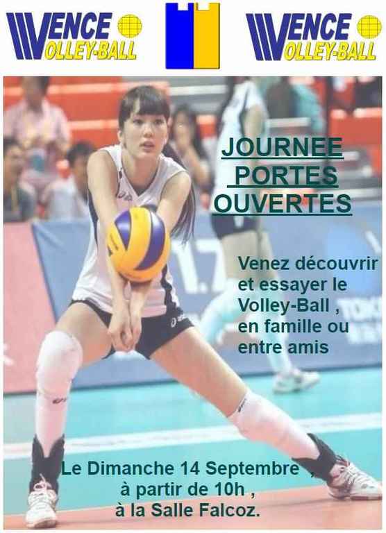 Venez nombreux participer à la journée "Portes Ouvertes" du Vence Volley-Ball le dimanche 14 septembre 2014 à partir de 10h à la salle Falcoz.